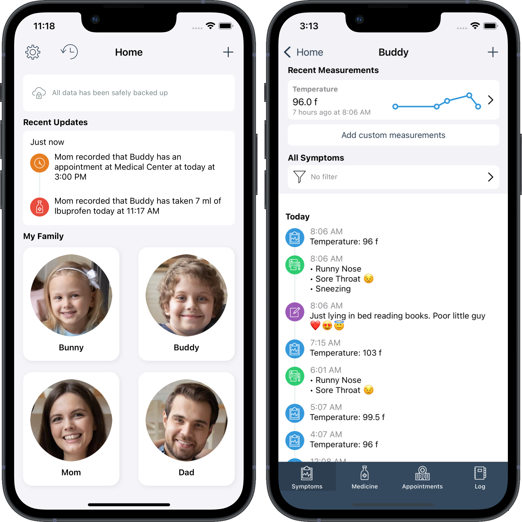 So that's where the original idea came from. Since then we've carefully redesigned it and rebuilt it from the ground up. We've added countless other features that Meg and I thought of to make our lives easier. At some point, we even added ourselves because it turned out the app was great at keeping track of grownups health too.